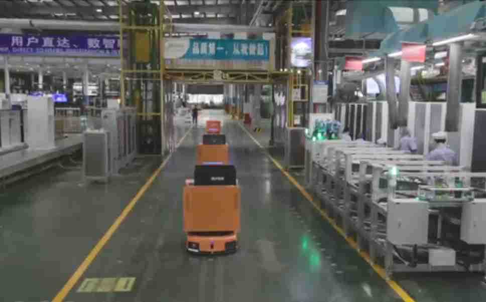 为车载冰箱物流配送打造的智能解决方案,,,,包含产中物流通过潜伏举升AMR搬运至线边,,,,产后成品物流智能仓储,,,,流程包含产中物流智能齐套入库,,,,线边安灯叫料AMR智能配送至线边,,成品入库、、、、出库,,,通过无人堆高车机器人,,智能仓储管理替代人工作业管理,,实现更高存储、、、、更高效率、、更具柔性化的解决方案。。。